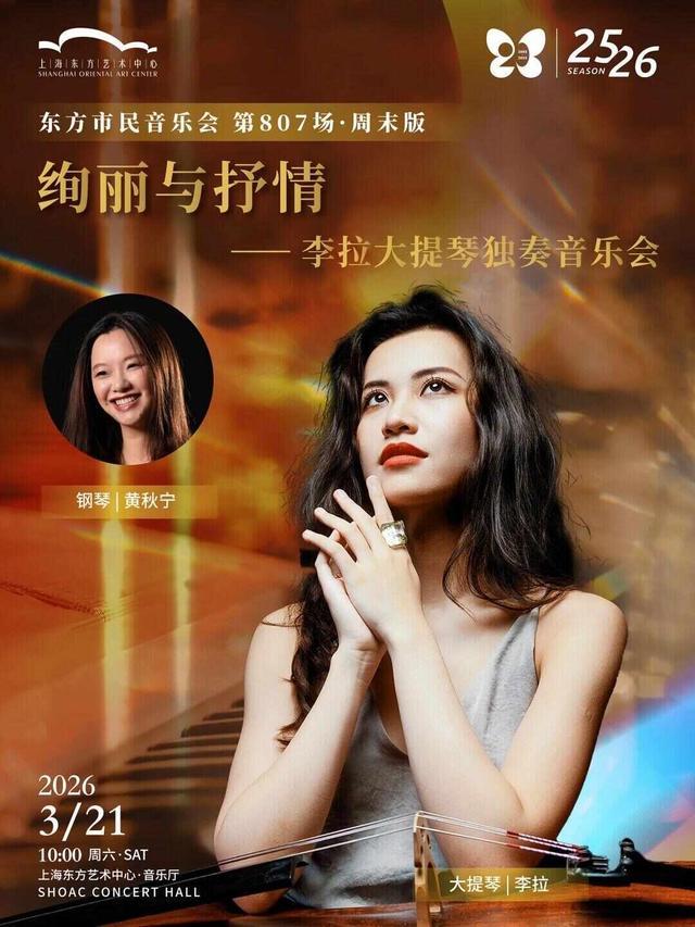 3月两场演出各具特色,上海拉纤人室内合唱团献演“望春风”专场,呈现《如愿》《身骑白马》等改编精品。3月21日,颇具人气的青年大提琴家李拉将携手钢琴家黄秋宁,演绎“绚丽与抒情——李拉大提琴独奏音乐会”,普罗科菲耶夫《C大调大提琴奏鸣曲》、肖斯塔科维奇《D小调大提琴奏鸣曲》等颇具难度挑战的大提琴作品将依次上演。